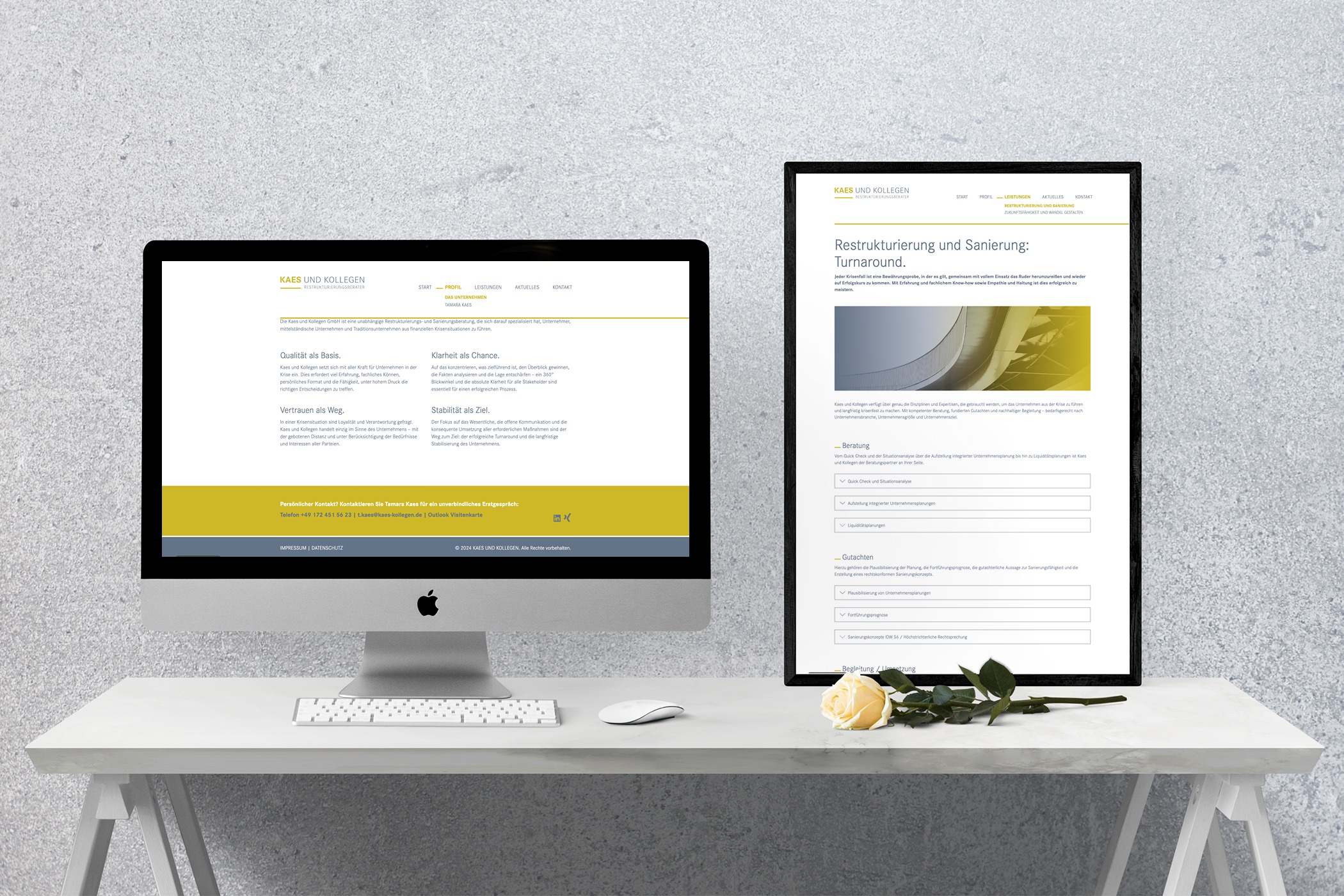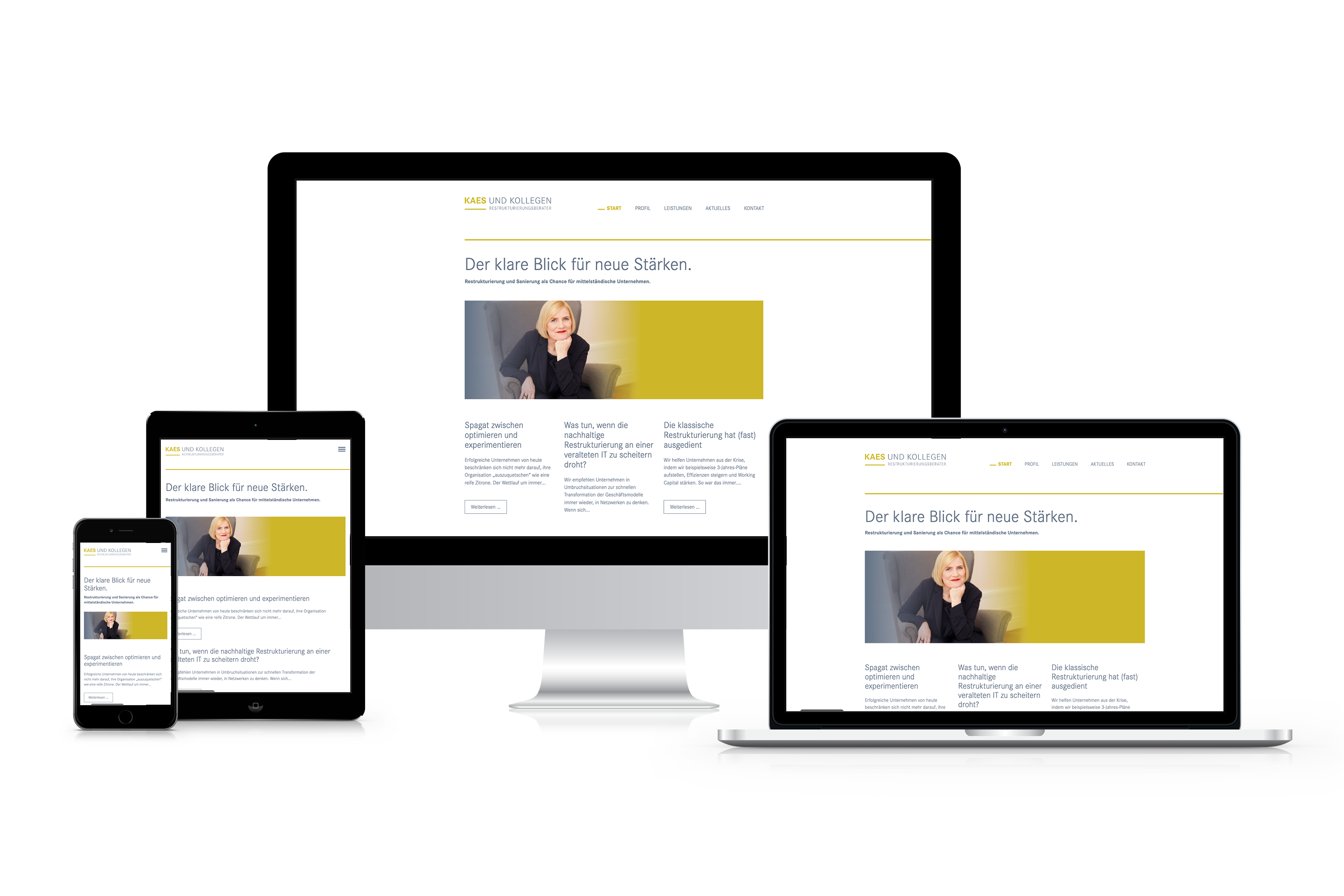 Die WordPress-Website der Restrukturierungsberatung "Kaes & Kollegen" wird von uns von einer Vorgänger-Agentur übernommen. Wir sind für die sukzessive Weiterentwicklung und Erweiterungen der Website zuständig. Gibt es einen neuen Business Case, so setzen wir die entsprechenden Anforderungen für diese Website programmiertechnisch um.