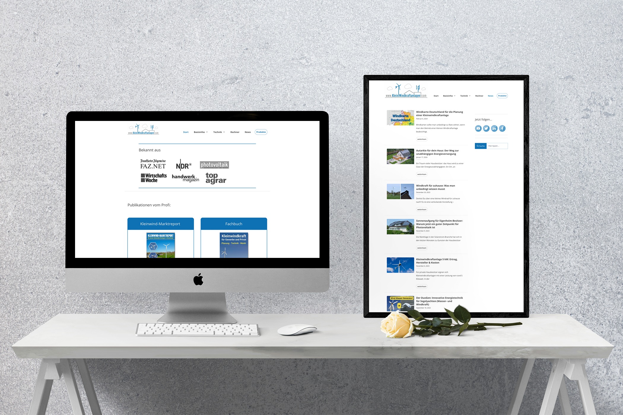 Die WordPress-Website des populären Info-Portals Klein-windkraftanlagen.com wurde vom Inhaber selbst gestaltet und initial aufgebaut. Wir sind für die sukzessive Weiterentwicklung und Erweiterung der Website zuständig. Außerdem stehen wir für den Support zur Verfügung und stehen dem Kunden technisch-strategisch beratend zur Seite, u.a. bei der Einführung eines neuen Themes.