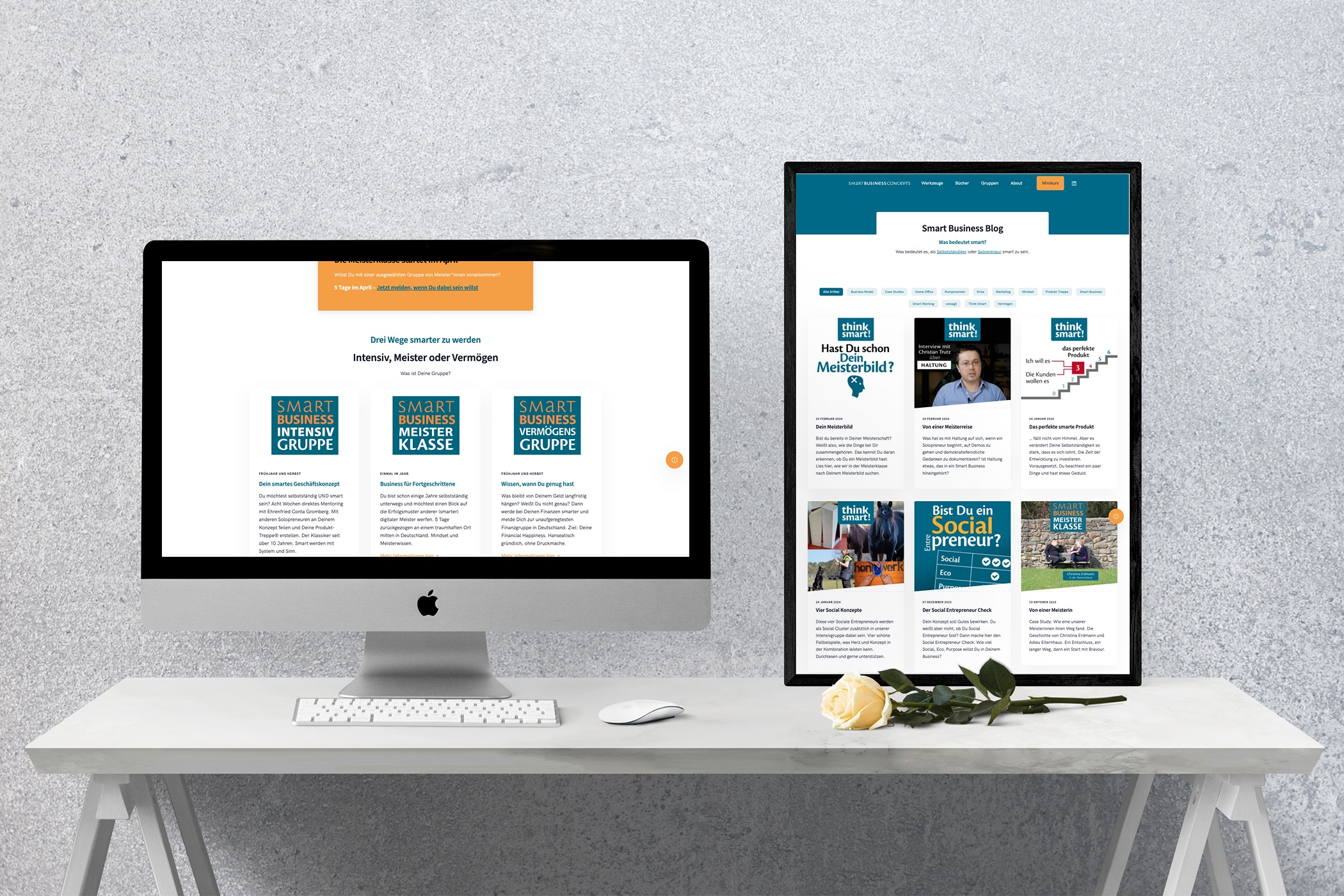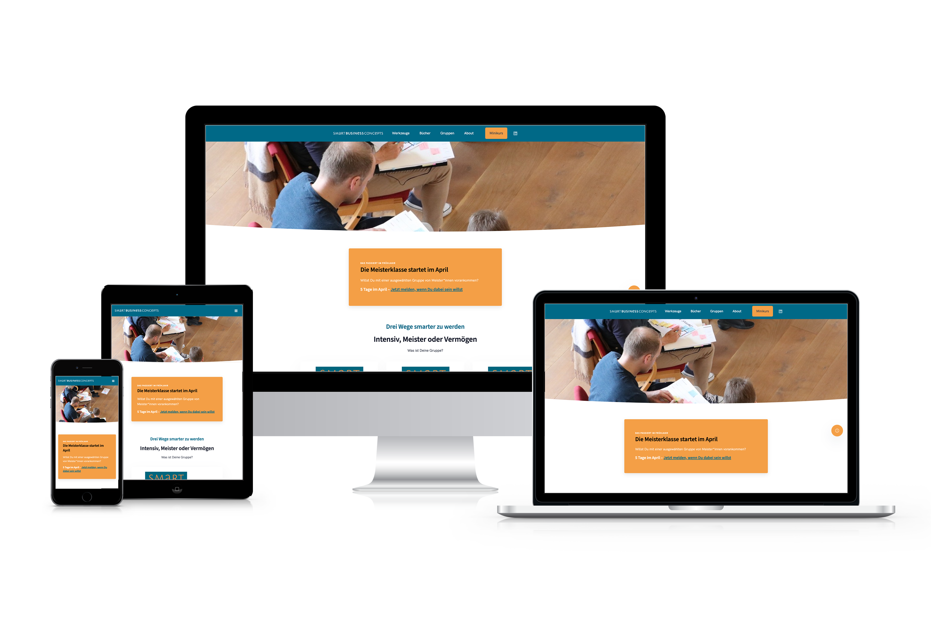 Die WordPress-Website der smarten Unternehmensberater "Smart Business Concepts" wird von uns von einer Vorgänger-Agentur übernommen. Wir sind für die sukzessive Weiterentwicklung und Erweiterungen der Website zuständig. Gibt es einen neuen Business Case, so setzen wir die entsprechenden Anforderungen für diese Website programmiertechnisch um.